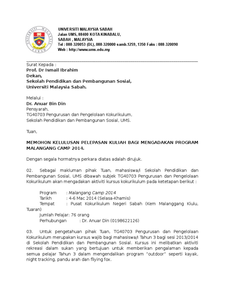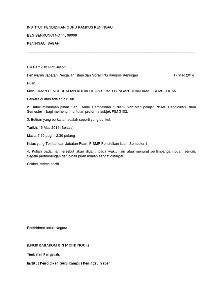 Sample Surat Pengecualian Kuliah Pdf