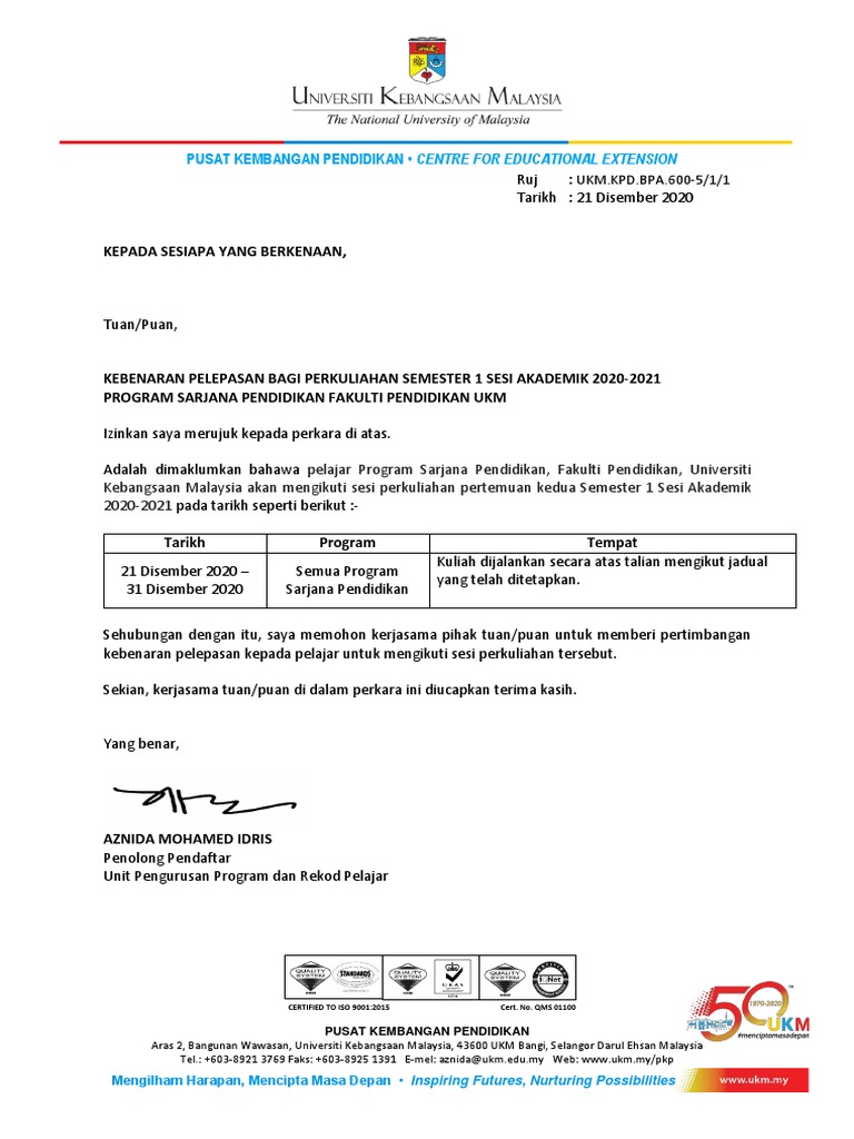 Contoh Surat Pengecualian Kuliah Uitm Kumpulan Contoh Terbaru